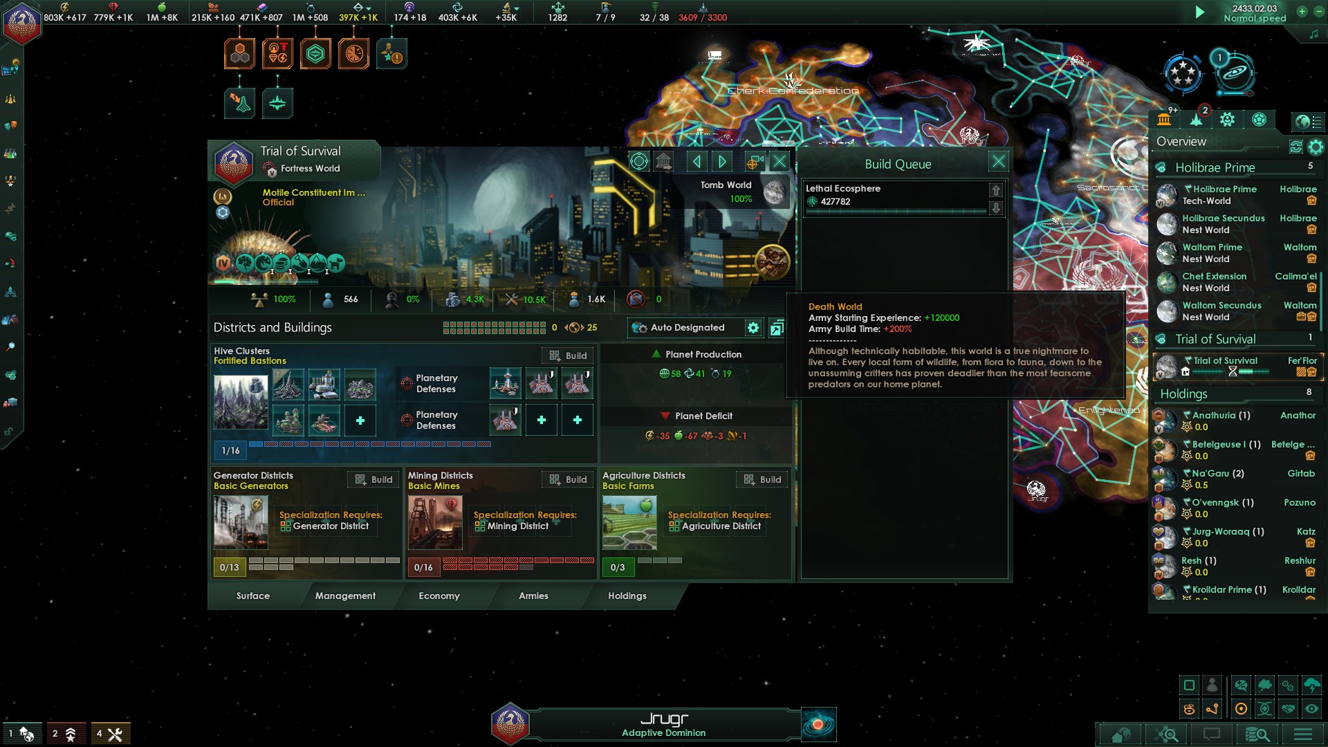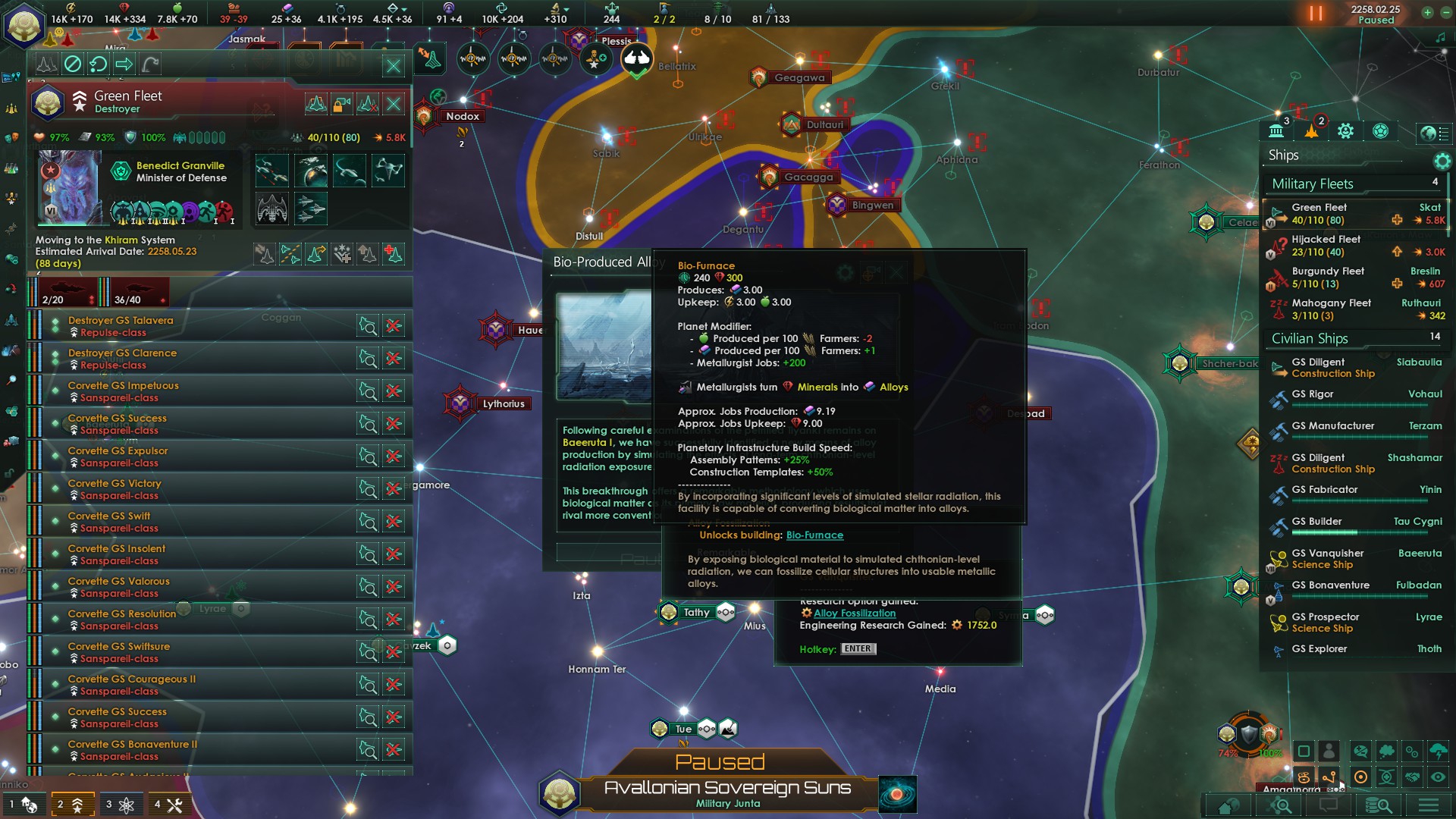 >>1295996 > Потому что на сложности гранд адмирал вассал будет иметь +50% (вроде) к производству всего, а игроку такой бонус никто не даст. Бот не умеет строить домики и делает пиздец на планетах, бонусные ресурсы это хоть как-то компенсируют. У нас -1 еды, давайте всюду гидропоник построим. Потом нужны минералы, поэтому ставим районы поддержки шахт. А ещё нужна энергия, поэтому назначим эту планету генераторным миром. Даже Гранд Адмирал это не максимальная, а обычная сложность. Там сложно через 50 лет не иметь лучшую в галактике экономику и флот.