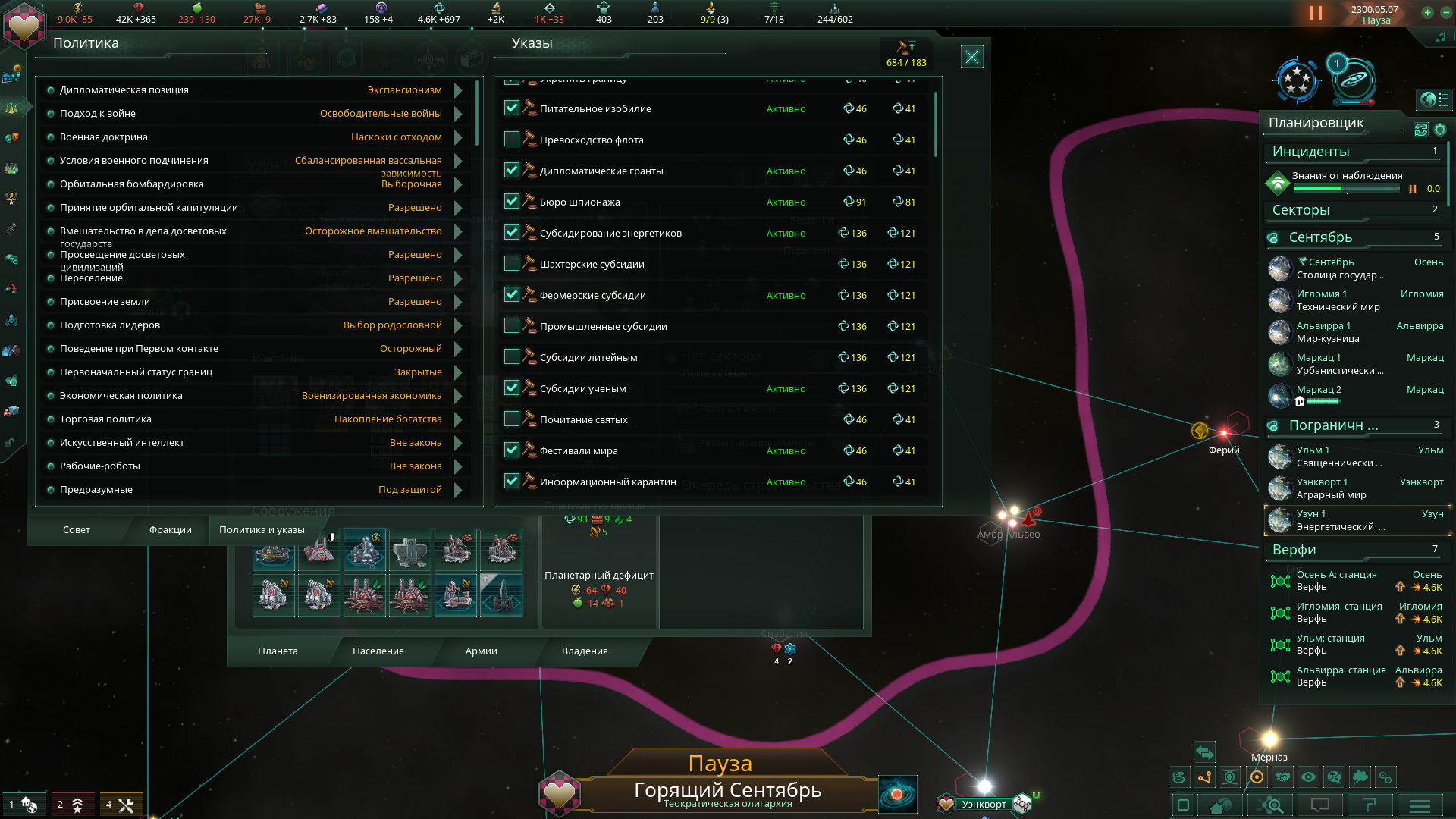 >>1295953 Исследуй системы, строй архив, выставляй там урановые бокалы. Еще кое-что, гибко регулировать можно выхлоп ментов, в планетарных решениях есть кампания по борьбе с криминалом (включение доступно если криминала уже заметно), плюс к подавлению и к содержанию ментов, если применить это на базовых ментов от столичного здания, то ментовку наверное можно будет снести. И вроде криминал начинает вредить когда его становится процентов 30, появляются работы преступников и начинаются тухлые ивенты и модификаторы.