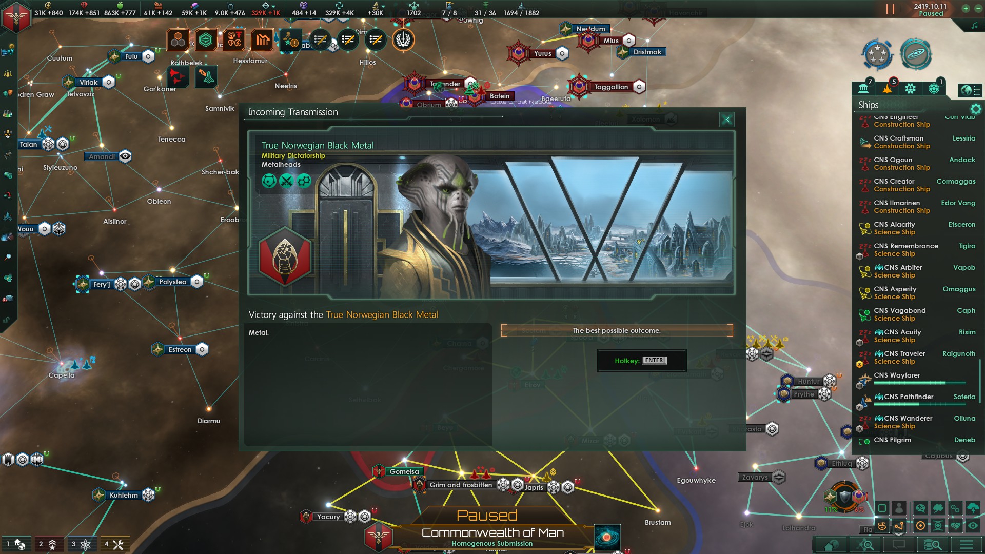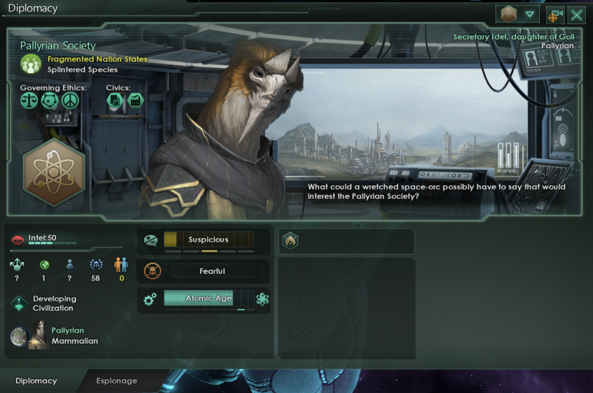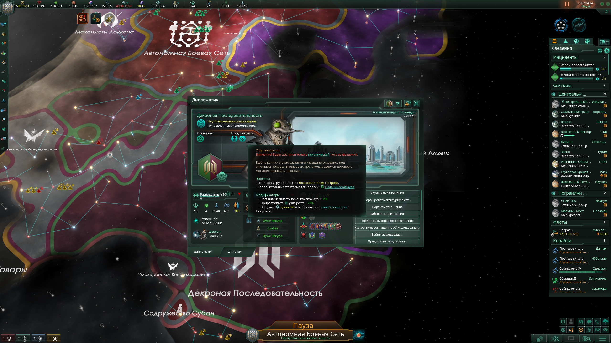 >>1295994 После космогенезиса вроде сначала заставили выбрать новую империю или стать наблюдателем, а после выбора наблюдателя и перезагрузки снова открылась старая империя, только ИИ перестроил планеты в пустые экуменополисы. Теперь дипломатии нет, могу только торговать и получать оскорбления.