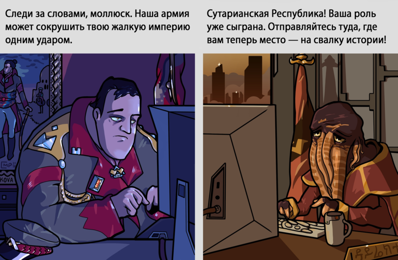Не хочу вас огорчать, но пока вы тут переписываетесь, я вплотную пригнал к вашим крепостям невидимые фрегаты с торпедами, которые ваншотнут все ваши форпосты Ваш дружелюбный сосед-пацифист