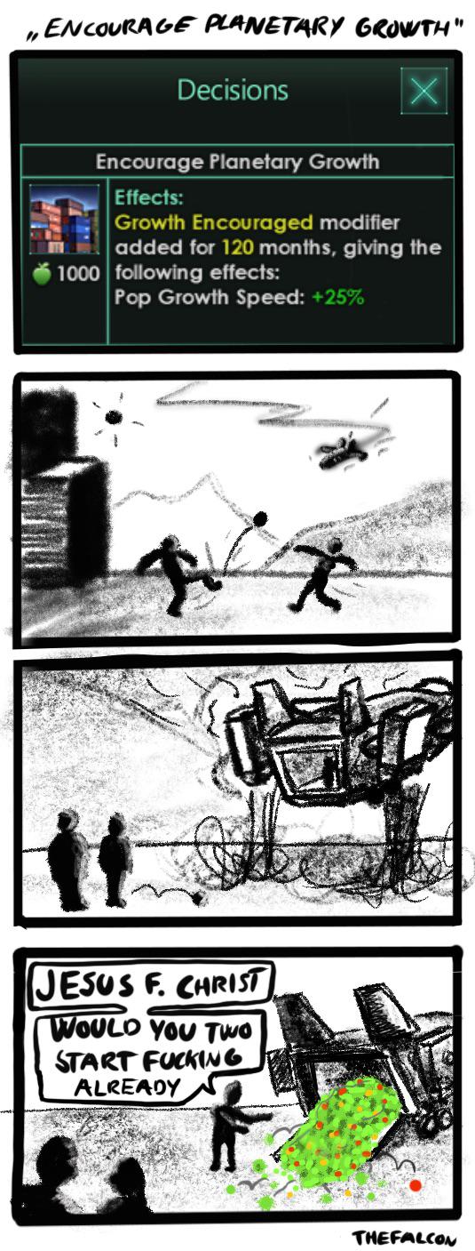 >Где модификатор от доступного жилья В случае перенаселения планеты плодячка падает. Зависит от ёмкости планеты, а лучший способ поднять ёмкость это строить доступное жильё и ибатеки.