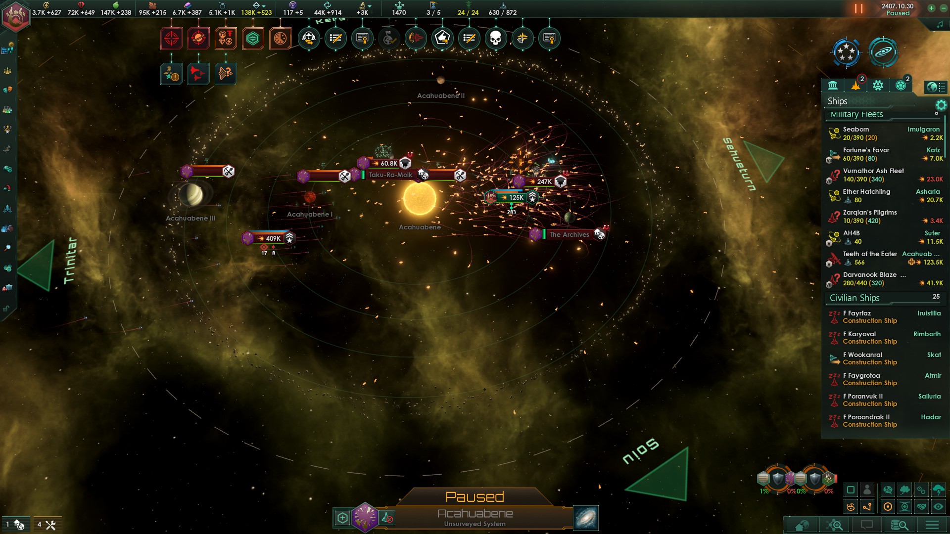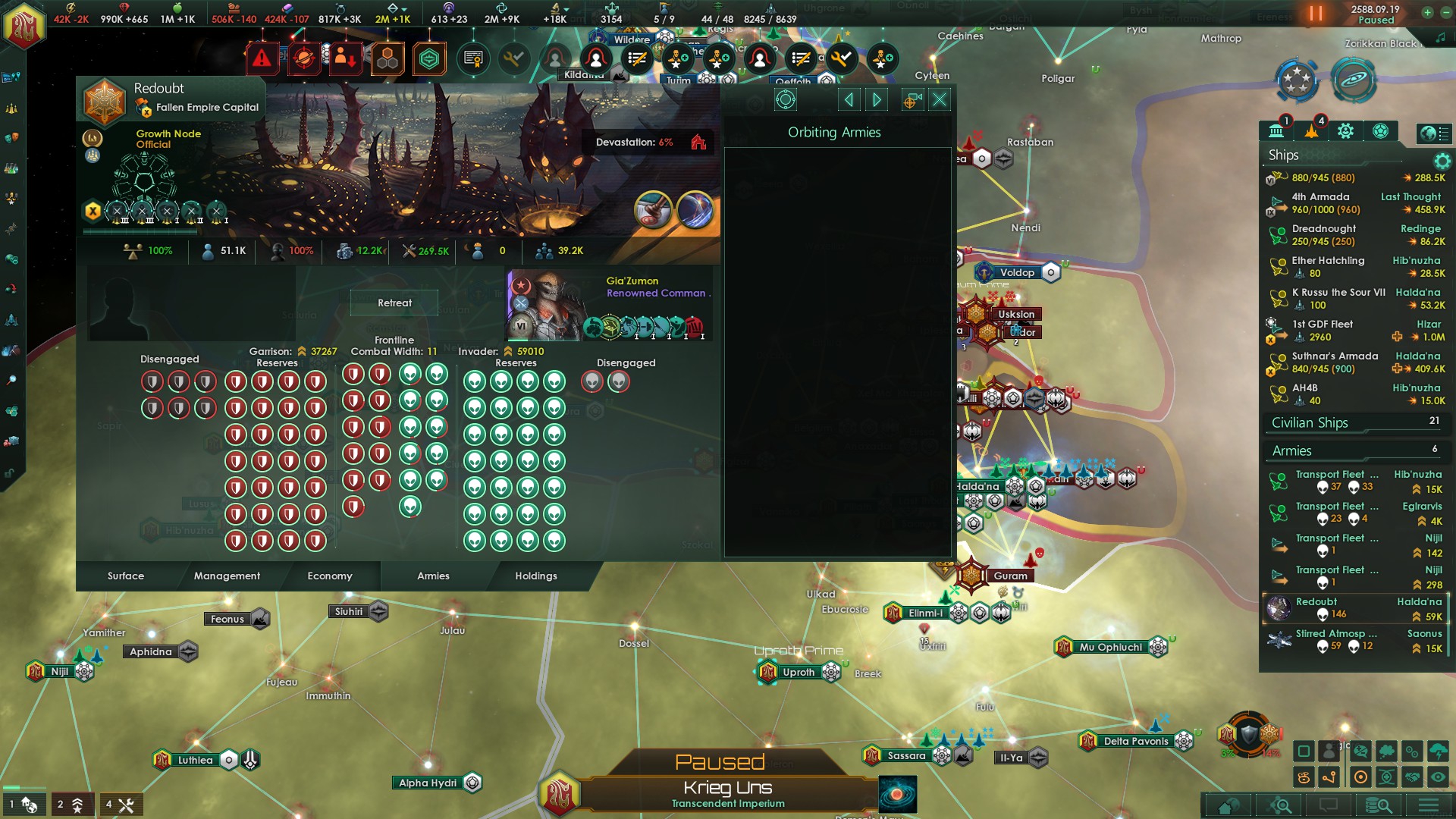 Итак, на бете с порезкой всего я окреп, раскачался, поборол вечный дефицит энергии, обложив данью и хуями вассалов и надавав им планет (одну фолленщину целиком слил корпе проспекторию чисто чтобы не ебаться с менеджментом хуёво застроенных планет), теперь я готов бросить вызов 1 на 1 без федератов пробужденцу (у него тоже есть федераты) и его 2+М флота, а для подстраховки у меня гдф флот на 3000 лимита! ЧТО ЗНАЧИТ 2550+ ГОД!?!?