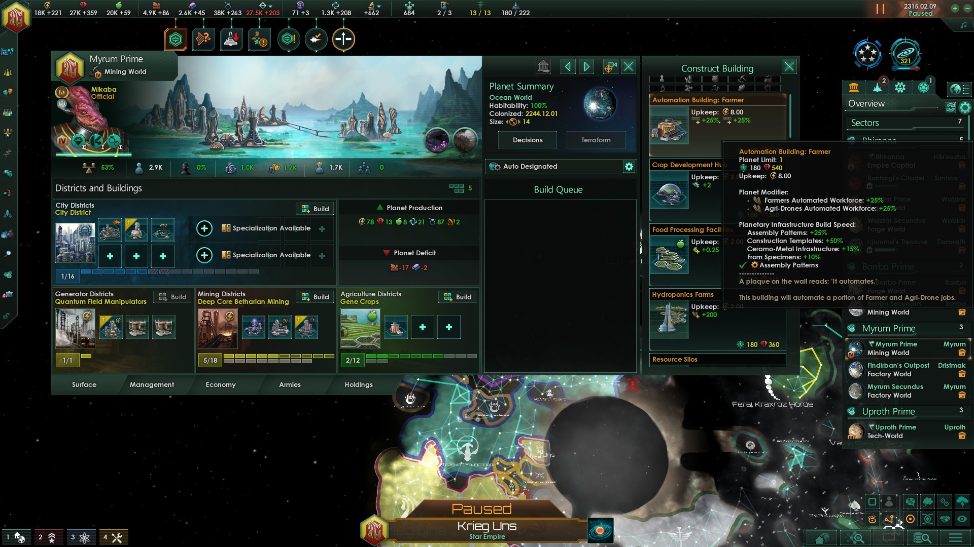 Мир улей на данный момент времени - самый гибкий и профитный из всех других спец-миров, потому что в отличии от машин не имеет ограничений на типы производимого и добываемого ресурса, может быть терраформирован из любой планеты за нихуя (В отличии от экуменополиса, которому надо все раены городскими сделать а потом выполнять проект вместо пасивной терраформы), а так же, опять же, почти ни для кого не имеет ценности