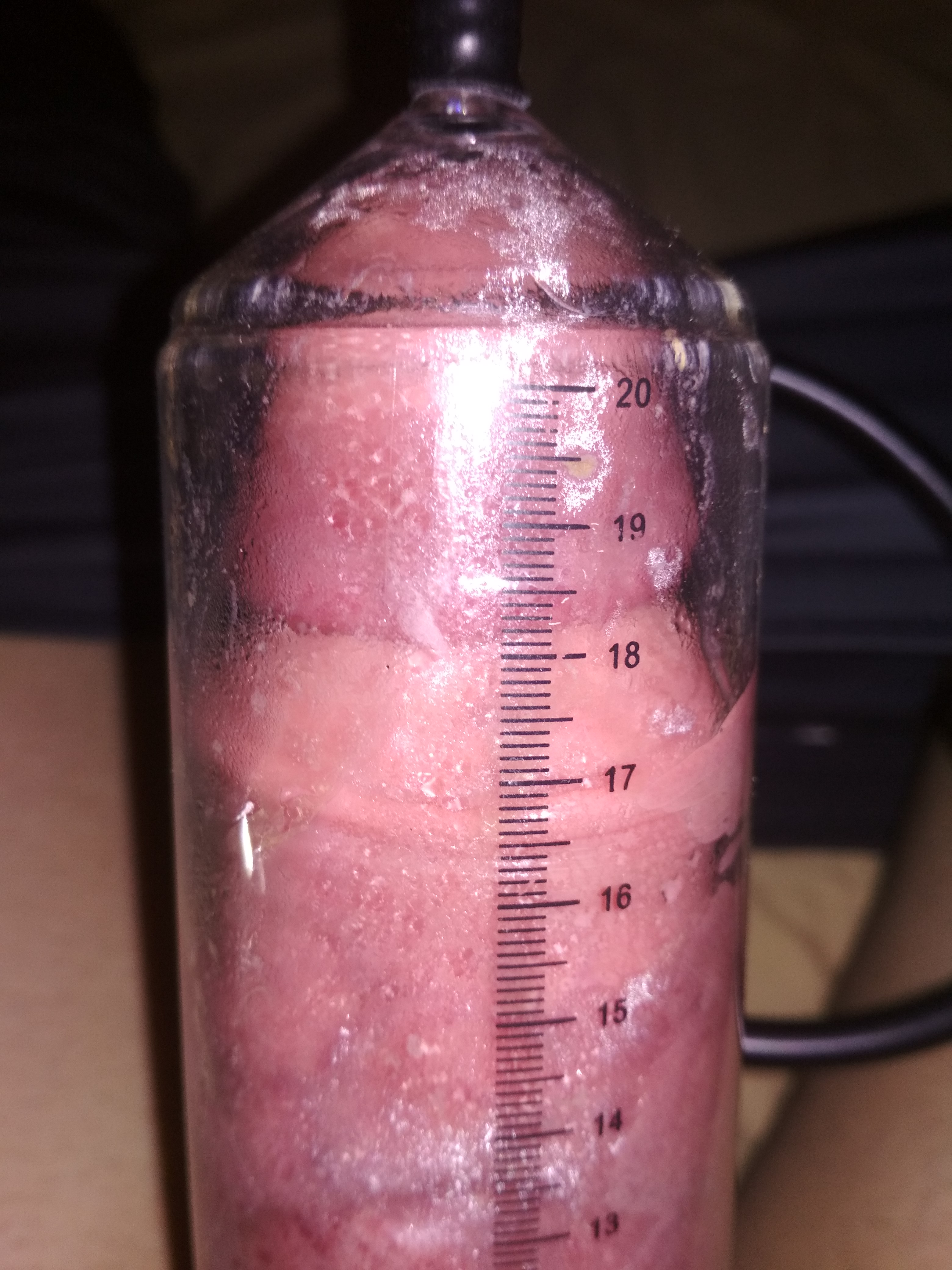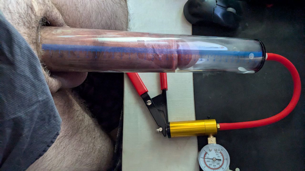 В 24 купил еще одну помпу, тоже из сексшопа, стандартного ебануто большого размера, занимался с ней раз в месяц по приколу взамен дрочки, прогресс появился именно тут, но там не было манометра => перетрены и прочие побочки присутствовали, что естественно мешало росту в полном объеме.