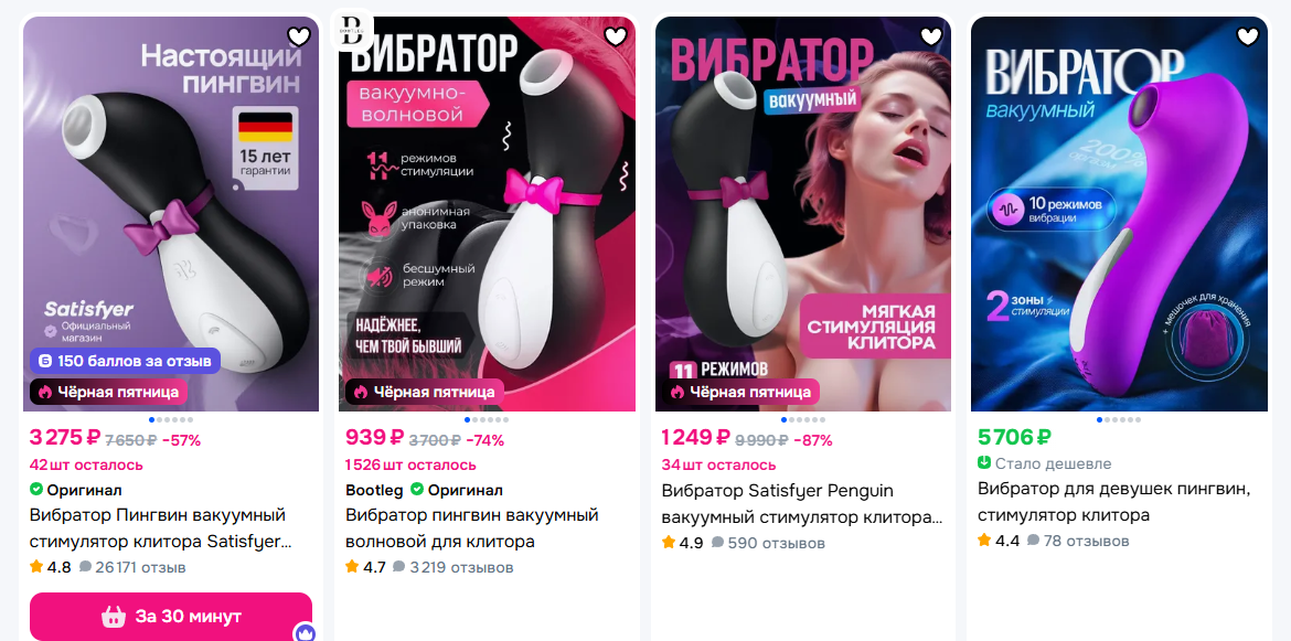 Сатисфаер тема. Давно уже понял, что если и брать вибраторы, то только дорогие (+- 6-10к), потому что у них вибрация более глубокая. Был оригинальны Ловенс Лаш 2 и китайская паль - разница колоссальная. Поэтому всякую резиновую лабуду можно брать с маркетплейсов и ноунеймы почти, но элетрическое всё желательно подороже искать