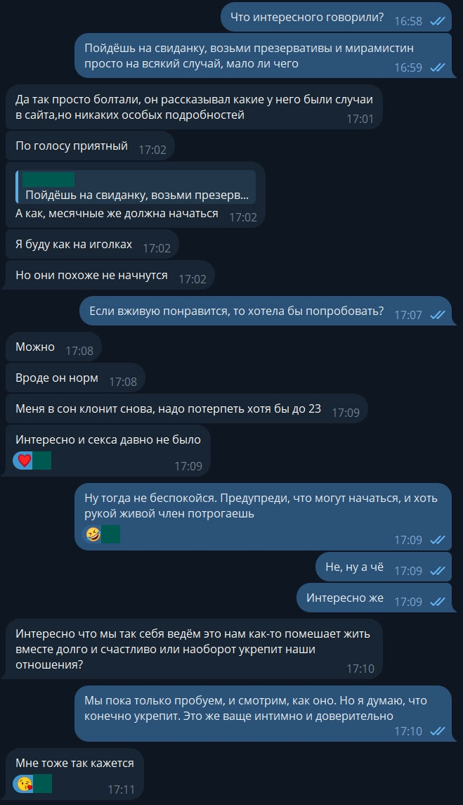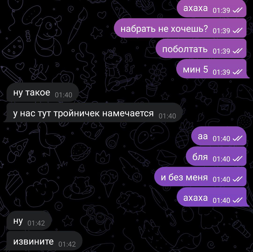 По итогу за практику взяли совместное обсуждение подкатывателей, она переписывалась с ними при мне (но сама ничего им не отсылала btw), иногда прямо во время переписки одной рукой дрочила мне, другой переписывалась. Ну и следующим шагом купили дилдак и начали его подключать третьим в сексе