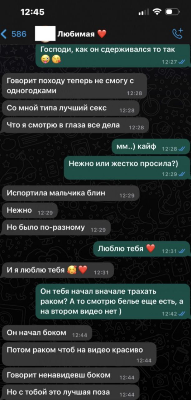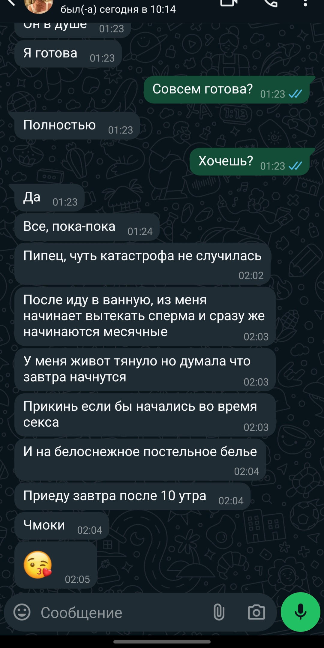 Стори 8 Приветствую коллег. Прошлогодняя история, нового давно не было, но мы в процессе. Продолжения переписки нет, она скинула мне несколько видео их секса, и заснула. Изначально мы списались с любовником на сайте, она поехала с ним познакомиться вживую в бар (скрины переписки как раз в этот момент). Он ей приглянулся, и не откладывая в долгий ящик, они направились к нему в снятую квартиру. Там сходу разделись, и сразу приступили трахаться стоя у большого зеркала. Потом переместились в спальню, продолжили там. Отдыхали, и в этот момент она присылала мне короткие видео, которые успели снять. Я тогда впервые увидел, как её трахают, дрочил на видео всю ночь. Потом она пропала, как оказалось, снова трахалась перед сном, и осталась там ночевать. Утром уехала на работу, и вечером мы встретились дома, где всё обсудили. Было хорошо, но одновременно как-то необычно, что ли. Из-за месячных они особо не экспериментировали, но кровать вроде не замарали. Как-то так