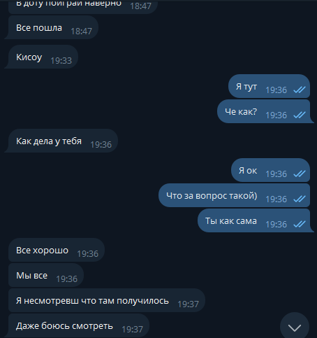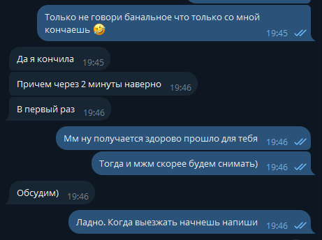 Уже и после невинного флирта, как нам показалось, дела на работе у нее начали налаживаться, ответственности становилось меньше, но зп оставалась на уровне. Так вот после первой свиданки все ускорилось еще в несколько раз. Моя получила внеочередное повышение зп, перевели под непосредственное подчинение кабанчика (тобишь по иерархии выше обычного чела), и так все улучшалось буквально с каждой свиданкой. Но уже после третьего свидания, моя сказала мол "кун-нейм все более и более настойчиво намекает на секс, шито делац". Думали вначале динамить до победного, типа налутать ништяков, а там будь что будет, но как контраргумент - у моей зп стала x1.5 рынка за по сути нихуя неделание (не считая флирта в инсте и пары свиданий). Пока обсуждали ЗА и ПРОТИВ, ненароком заметил, что от моей исходят только ЗА, тут я уже не сгорел, а наоборот, решил, что хуй с ним, тянка вроде как не против, с ништяков кормлюсь и я, так что будь что будет, соглашайся.