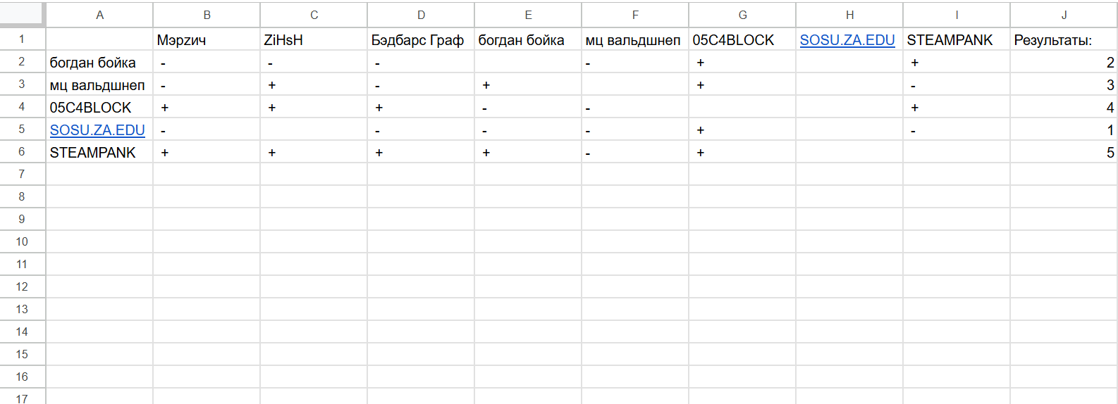 Когда результаты по лиге говна? Или наш орг на нас совсем забил? Да и кого на судейство будут приглашать так и не понятно. Мб есть смысл дать нас голосовать также, как и в других лигах?