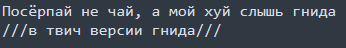 Шмык делает шмыг-шмыг-шмыг-шмыг Пока я в него хуем тык-тык-тык. Убирай свои галимые понты На доске вниманиеблядей анонимы не нужны.