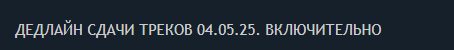 >Я могу сдать несколько треков? Нет. Виртуалы запрещены. При раскрытии виртуала участник будет дисквалифицирован вместе со всеми раскрытыми виртуалами. На одного человека только один трек.