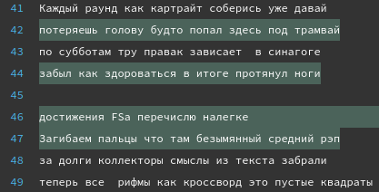 >>1019042 Все правильно ты пишешь. Чтобы что-то хорошее написать, иногда нужно посидеть. Это здесь калосоздатели за 5 минут клепают приколы. Хотя я, бывает, что-то неплохое могу за день или два написать, дальше уже вытачиваю. Иногда просто нужно сесть, написать хуйню, а потом трезвыми глазами посмотреть, где-то исправить, где-то подпилить. По такой технике тоже пацаны мутят треки. Вон, как Славик КПСС говорил во вьюхе. Грит, я тупа встал, похавал, попалил новости и за микрофончик часа на 3 фристайлить, лол.