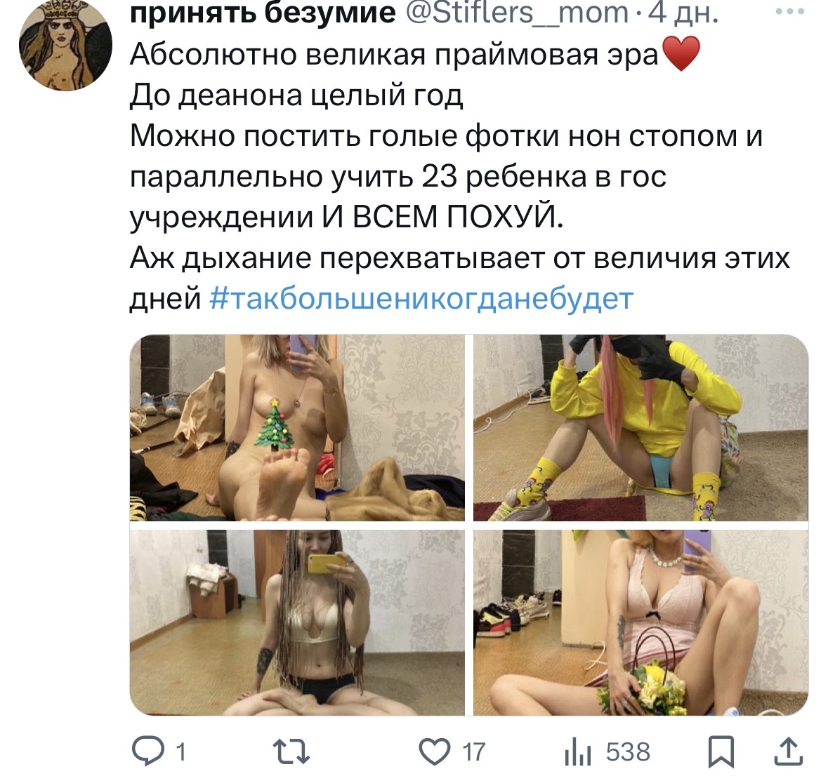 От этого поста несёт заплывшей сисой, такие только на дайри и водились. Ебало тётки за экраном имагинировали? Пиздец нах, сиди на багине, раз прошлый раковник сдох, там твоего жида обсуждают днями и ночами. А лучше поменьше появляйся в тырнетиках, забудь про русский рэп и займись воспитанием наёбышей.