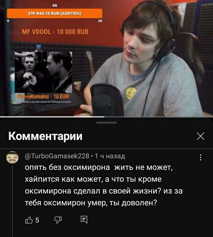 Оксюморон кстати ответил вчера на стриме, почему на последнем релизе еже нет фитов с овсянкиным: овсянкин сказал, что теперь записывается только вживую