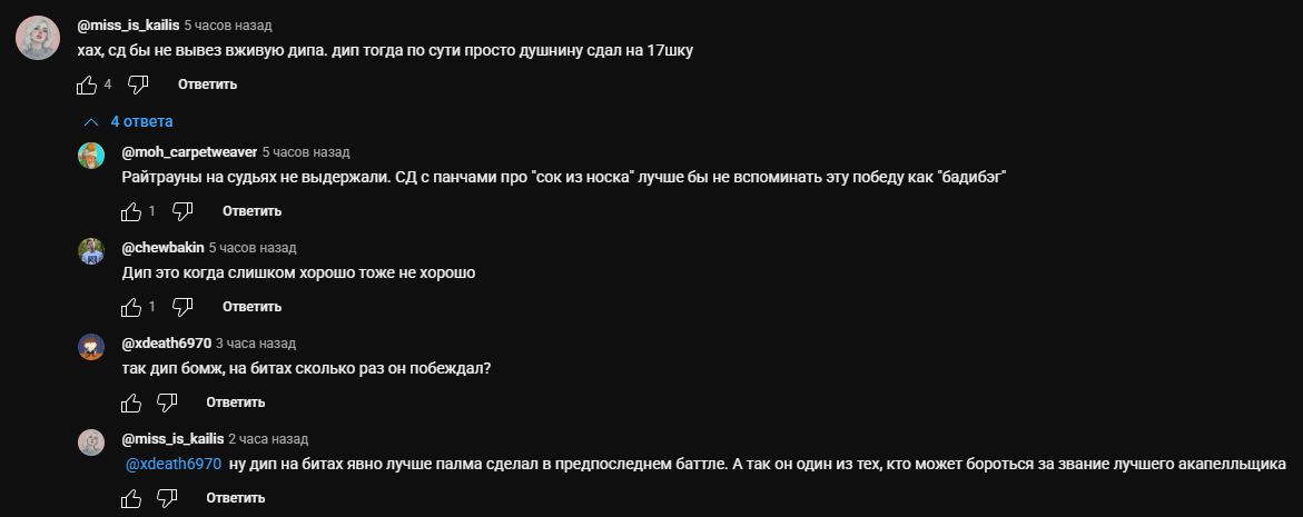 Эй, анончики, а какого хуя ваш толя дипикс соснул и вити сд на семнашке? И нахуя шлавка стс затерпел от хуйши? А почему курома любит куколдить баттл реперков? Давайте обсудим эти важные темы здесь, а не в их тредах, как вы это любите.