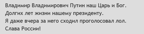>>1022048 Нет,я не сисуня,это по письму видно. Помимо сисунь,терпов и прочих обитателей тренда есть обычные граждане,которых не устраивают поступки вашего идола.