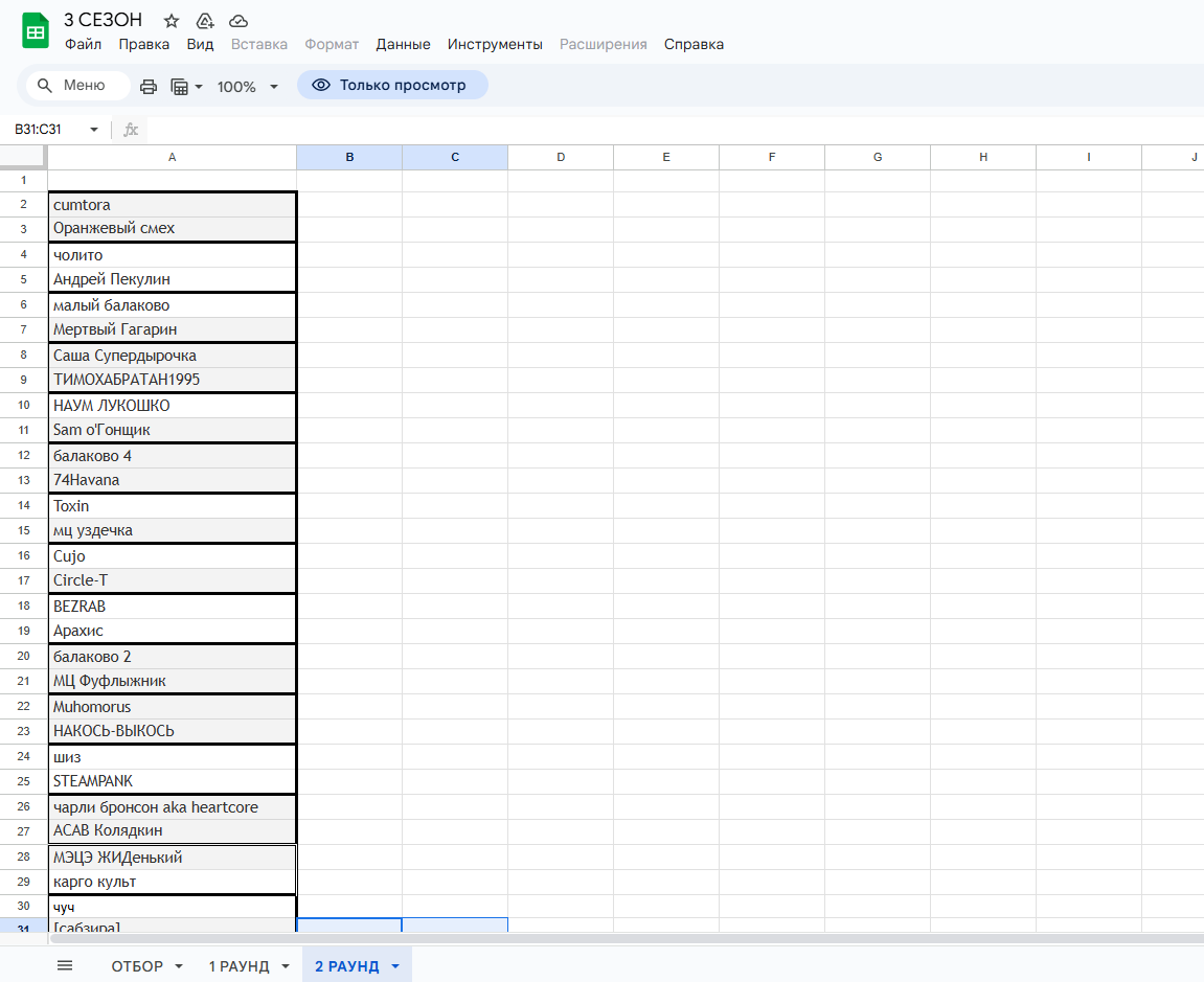 НЕ НУ ПРОСТО ИМАДЖИНИРУЙТЕ ЕБЛЕТ ЭТОГО ДОЛБАЁБА, У НЕГО ВКЛАДКА ВТОРОЙ РАУНД (КОТОРЫЙ БЛЯДЬ СЕЙЧАС ИДЁТ) - ПУСТАЯ, ОН СОЗДАЛ ЕЩЁ ОДНУ ВКЛАДКУ С НАЗВАНИЕМ 3 РАУНД И ЕЁ ЗАПОЛНЯЕТ