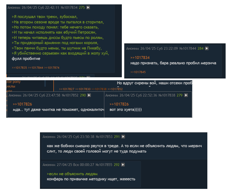 Лосина, я тя зря что ли в прошлом раунде пропустил? Нахуя ты опять про меня половину трека читал, дебилушка? А как же наш план зашкварить двачбатл окончательно....