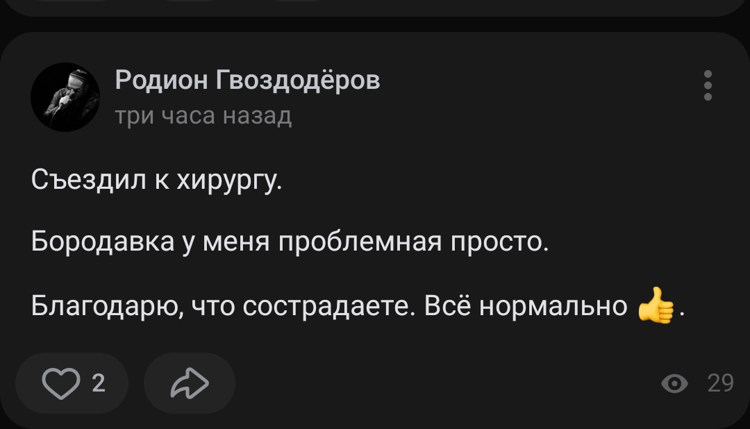 Знаю, что многие не любят писать посты, активничать в соц сетях и т д. Я сам никогда никому особо не оставлял комментарии и не давал обратную связь. Но в последнее время, я осознал, что иногда ты можешь сказать кому-то то, что ему очень важно услышать. И теперь всегда, если калтент меня как-то впечатляет, то пишу свое мнение или искренне желаю удачи.