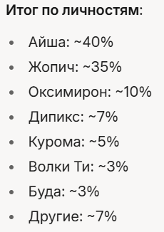 2. Защитники Айши Бедная Айшуня, вы чё на неё набросились, дауны? У неё биполярка, мать пиздец, детство в аду, а вы орёте «шиза, в дурку». Похер, что сливы кидает, она жертва, а Жопич её кинул, как чмо. Пожалейте девочку, не гоните манию, хватит Курому постить, мрази.