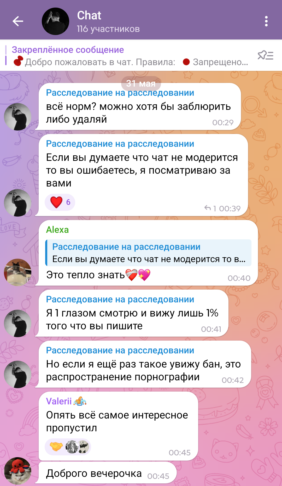 Следила за чатом тгк оксиподстилок с марта. Господи, они там такую хуйню несут, похлеще вас инцелов или тёток на багиньке. Ещё там активно зависает бывшая служанка Хованского, которой он комп зажабил. Она там активно сосёт оксижопичу и срёт его бывших. Короче, там эти ебанашки совсем разошлись и срут всех даже за негативную реакцию на их высерах с полкилометра. А с недавнего слива оргии леваков в Тбилиси у них совсем ржавая крыша поехала, уже админша в ахуе. В общем, надоело наблюдать за этими тпшками. Если чё там будет интересное, то кидайте сюда или в тг жопич треда.