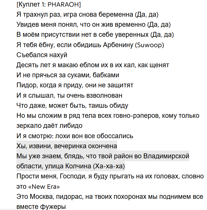 >>1026993 >диссок на него Это не дисс, а хуйня. Они в треке читают от имени некоего облажает и диссят абстрактного противника Единственная строчка, за которую можно зацепиться "Это облажает, бомж ебаный" так сасай всё равно про себя говорит, он больше на бомжа похож