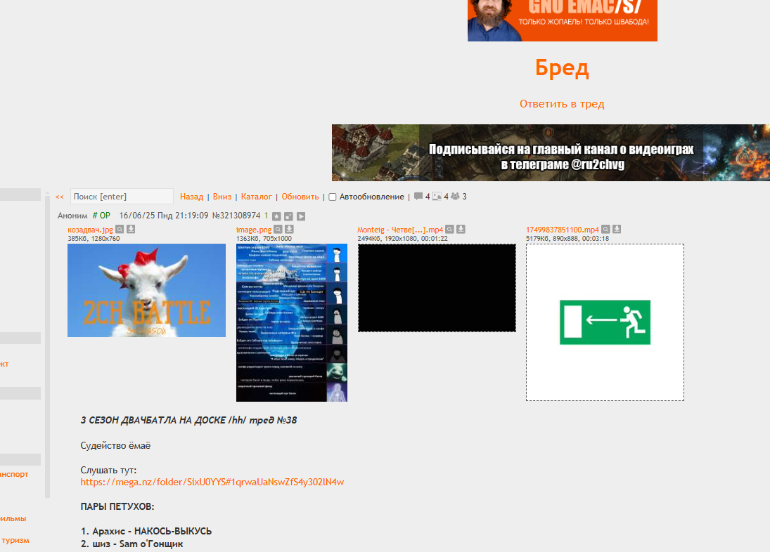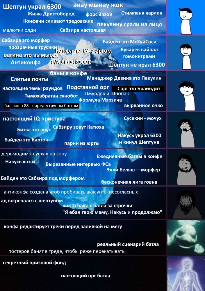 1. (Группа Боттом) - 01С4BLOCK У группы Боттом хороший, агресивный двач реп. Хоть и прошел 2 раунда автопроходом и один спасалкой, но упоменул все темы до этого) У 01 блока Очень хорошее сведение, будто весь блок сводил. Но трек скучный, по сравнению с апонентом. 2. балаково 88 - (SOSU.ZA.EDU) Организаторы пересвели трек Сосу за Еду, чтобы протощить балаковского. Но я сам пересвел Трек Сосу за еду, чтобы он стал слушабельным И он реально стал слушабельным. 3. Трубочист - (седьмой бог) Однокалиточная для седьмого моха, нахуй трубочиста. Точнее трубочисту респект, но кто Протаскивал его в прошлом раунде, тому на голову какал. Таи хули столько синих судей Которые слили бедного монтажа. Но трубочисту респект, хочу его в лиге говна, он там раскроет патанцевал Ну еще мне пронравилось, как Седьмой бог спарадировал заебавший всех балоковский флёу. 4. Мацэ Бестi - (ICE) ОЧЕНЬ СЛОЖНО, я думал ОЧЕНЬ долго. Не знаю как аргументировать, но трек Айса мне понравился больше (Айс скинь пожзалуста что у тебя на вокале весело в 2 раунде)