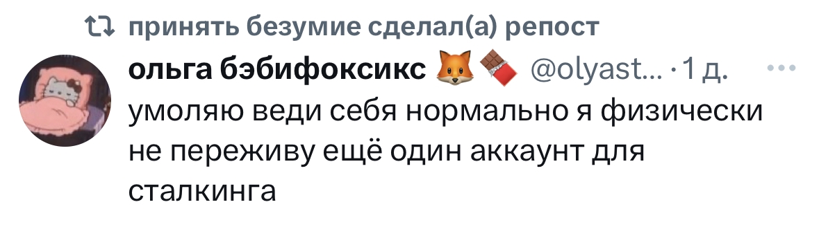 >>1048270 Чел, ты сейчас буквально описал его фанаток. Я недавно смотрел профили в их тгк блядушнике, там сидят одни скуфоебки, жиpуни и рспшки. Пару тяночек есть, но они пишут как нейросеть, хз настоящие ли это люди. Воукнутый оксижопич сам себе такую аудиторию привлек, годами подмазывался к фемкам, оппозиции, либерахам. Разочарованные уже успели снова очароваться и бегают гасить эту забитую Хуйчак, богатенькая Маркович тоже все свои соцсети закрыла из-за набегов этих жиpух. Они уже даже добрались до канала Михи и дрочат там свое оксиговно. Помешательство какое-то нахуй!