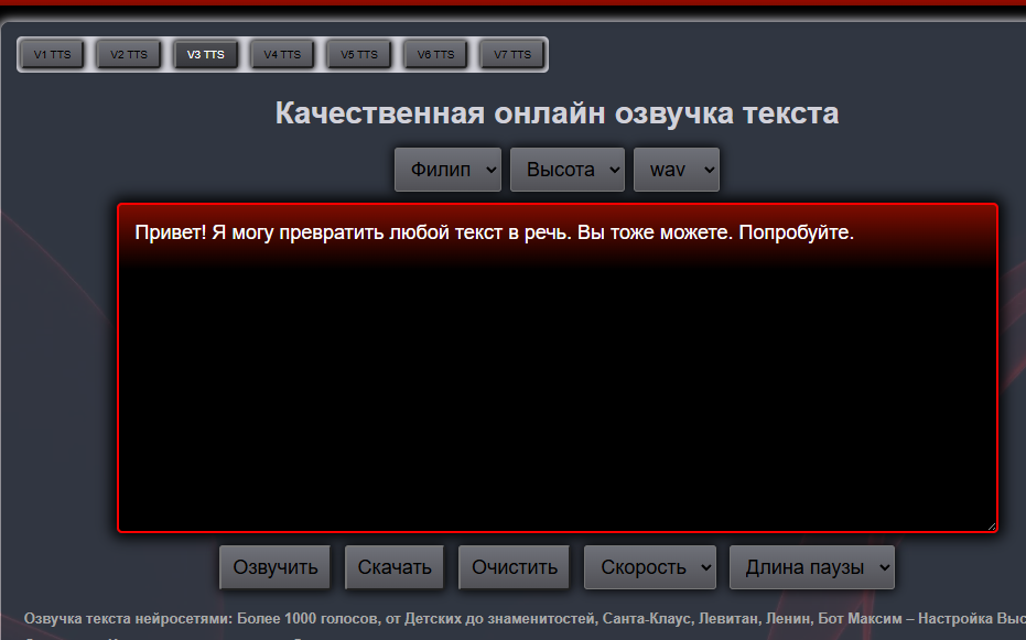 @silero_voice_bot - https://silero.ai/ - силеро бот в телеге, дохуя голосов разных известных персонажей. Нужно фейкоакк, чтобы получить премку на 5 дней и безлимитно генерировать звуки. Без према - 666 символов в сутки.