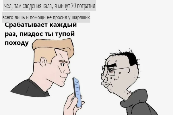 >>1056859 >я сведу и круто зачитаю, а вы так не делайте Чётко сказал, братишка.