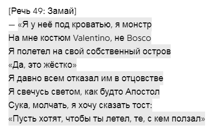 >Конфабляди грызут ноги кентов глотая опарыши, >В гондоле два пидораса и я, мы конфачеры по-разному. >Их реп как суно, под их бэнгер чужая мать в углу, >Кто как проголосует. Не моя задача вынимать елду.