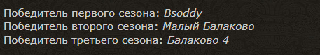 Список лиг: Лига Петухов - верхняя лига, формируется из первых 64/32 участников списка. Количество участников лиги зависит от числа сдавших на отбор. Лига Хуеты - нижняя лига, формируется из первых 64/32/16 участников списка, не попавших в лигу петухов. Количество участников лиги зависит от числа сдавших на отбор. Лига Говна - лига для непрошедших отбор/вылетевших в процессе баттла участников. У лиги будет отдельный организатор, формат проведения будет известен позже.
