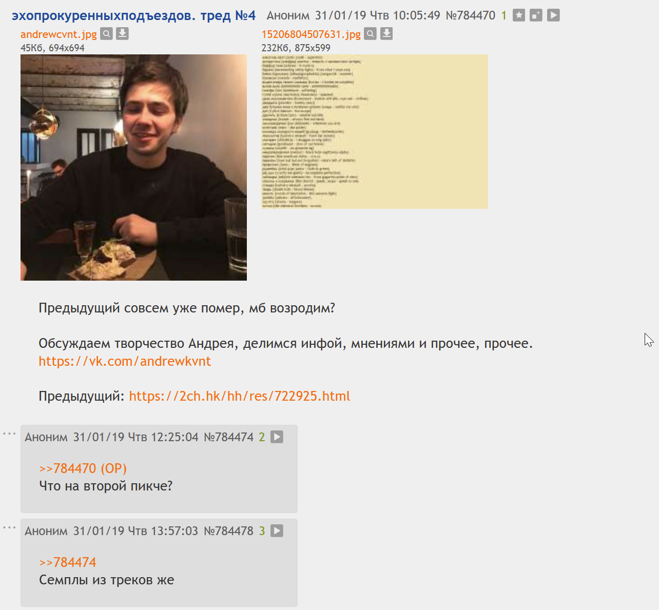 Аноны, у кого есть пикча про Эхопрокуренных подъездов, где указаны сэмплы из его треком? Поделитесь пожалуйста. Её раньше в каждом треде про него постили.