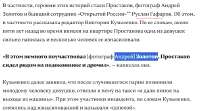 >>998717 > а рядом сидел журналист Простаков на подоконнике и дрочил Я помню эту историю, ща загуглил и оказалось, что там в изнасиловании, на которое дрочил некий простаков, якобы участвовал фотограф Андрей Золотов, которого Бамберг называл басистом своей группы и стебал за соевость. А еще в статье упоминается другая типичная твитор история про насилие, где виновник - некий твиторский Гафаров, так вот. Ему до этого дали в ебло и избили ногами ныне покойные Саша Скул и Murda Killa. https://cont.ws/@eugenyantonov/1456093