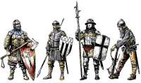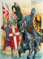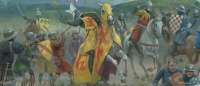 Рыцари госпитальеры 12-13 века. На заднем плане — брат-рыцарь времен Второго Крестового похода. На переднем плане — Великий Магистр Ордена Гарнье де Наплуа и его знаменосец, Осада Акры, 1291 г. Художник — Н. Зубков.