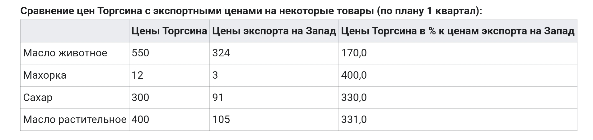 >>1010024 Во время голода 1932—1933 годов люди были вынуждены менять свои сбережения на еду. В 1933 году продукты питания составляли 80 % всех проданных в Торгсине товаров, причём на дешевую ржаную муку приходилась почти половина всех продаж. При этом розничные цены на продовольствие были в среднем в три раза выше, чем при крупнооптовой продаже за рубеж. В этом году Торгсин получил от населения 45 тонн чистого золота и почти 2 тонны серебра. С 1931 по 1936 год Торгсин добыл эквивалент 222 тонн чистого золота, при этом 70 % было получено от советских граждан. Золото принималось во всех видах: в слитках, ломе, монетах, украшениях и произведениях искусства. Зачастую цены на отпускаемое продовольствие были сильно завышены. Так, цена на муку была выше мировых в три раза. Также и по другим товарам наблюдался большой ценовой разрыв.