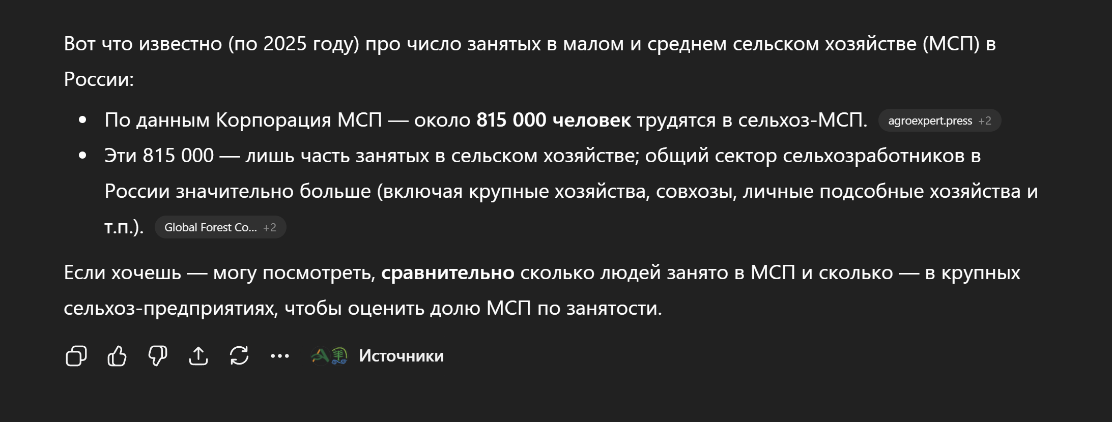 Спроси у своей шайтан машины долю мелкого бизнеса в сельском хозяйстве РФ, а не выдумывай хуйню из головы