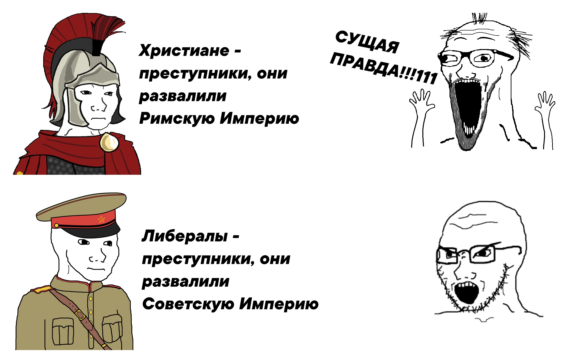 >>1022858 Так это популярная среди порвачков теория заговора о том что Римскую империю христиане развалили. Только вот каким образом? Западная пала под натиском варваров и всяких эпидемий. Восточная еще долго существовала и была христианской.