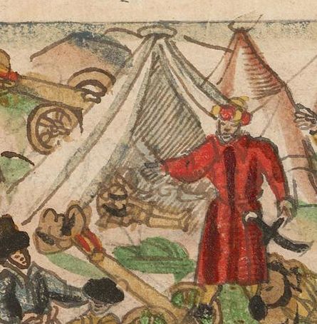 "Krom broni i pancerzy, oraz kirysów, oprócz futer sobolowych i innych przyborów do ochrony od zimna, pełno było kobierców, wszelkiej żywności i srebrnych naczyń. Każdy wóz miał obejmować najmniej po dziesięć zbroi lub kirysów".