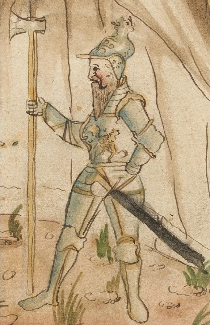 Об раскрашивавании латных доспехов у поляков: «Пописы упоминают только один пример брони копейщика, пластины которой были украшены краской. Находится она в списке роты Рокосовского 1471 года и называется там „тарантоватой”, то есть пятнистой. В других примерах нет описания цвета. Однако это не означает, что остальные доспехи не были окрашены. Многочисленные упоминания о разнообразии цвета вооружения стрельцов, которые можно найти в пописах, наводит на мысль, что снаряжение копийников тоже было окрашено. Это может свидетельствовать о том, что различные способы отделки поверхности брони не влияли значительно на её цену. В связи с этим такая информация не размещалась в пописах, призванных служить основанием для выплаты компенсаций за потерю вооружения. Выделение одной брони путем использования термина „тарантоватая", может означать, что получение пестрого пятнистого вида было более трудоемким и дорогостоящим, чем чаще выполняемое окрашивание в красный или черный цвет».