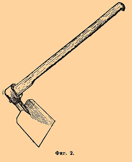 > Мотыга - ручное сельскохозяйственное орудие для рыхления земли. Другие названия: мотыка, тяпка, цапка, сапка, сапа, также кетмень (в Средней Азии)
