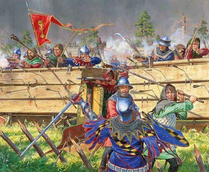 На этой хуйне поляки в турнирных пеших доспехах, в которых никто не воевал. Художник в жизни не видел как реально выглядят воины на поле боя, у него была пара комплектов трофейных русских шмоток, на их основе он всю армию и рисовал.