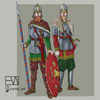 Все таки как выглядили армии домонгольской руси? Мне представляется небольшая элитная дружина в кольчугах на конях обвешанные оружием, остальные - быдло в меховых шапках, ватниках и с луками/копьями плюс наемники кочевники конные лукари.