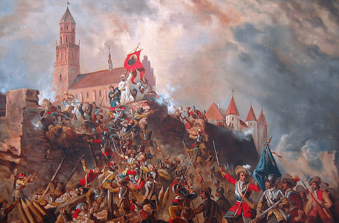 В начале XVII века для защиты от нападений монастырь был обнесён мощными стенами, превратившими Ясную Гору в крепость. Очень скоро фортификационные сооружения монастыря подвергнулись суровой проверке на прочность во время так называемого «потопа», шведского нашествия на Речь Посполитую в 1655 году. Шведское наступление развивалось стремительно, в течение нескольких месяцев были взяты Познань, Варшава и Краков; польская шляхта в массовом порядке переходила на сторону врага; король Ян Казимир бежал из страны. 18 ноября того же года шведская армия под командованием генерала Мюллера подступила к стенам Ясной Горы. Несмотря на многократное превосходство шведов в живой силе (шведов было около 3 тысяч против 170 солдат, 20 дворян и 70 монахов в монастыре) настоятель Августин Кордецкий принял решение сражаться. Героическая оборона монастыря вынудила захватчиков отступить и послужила примером для всей страны, что привело к изгнанию шведов, что многими в Польше было расценено как чудо Богородицы.