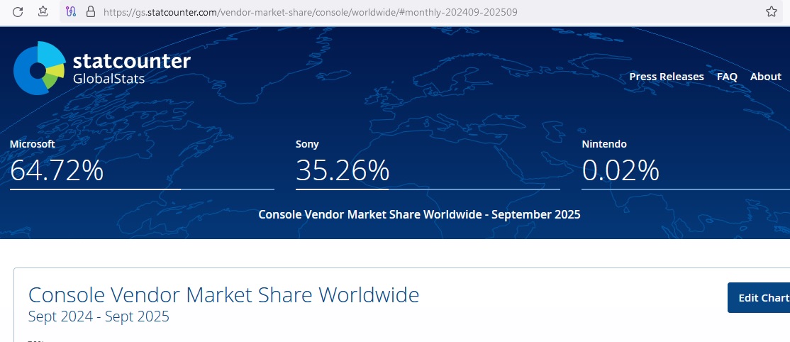 >Что за бред на пике, лол? У самой продаваемой консоли прошлого поколения Nintendo Switch всего 0,02% ? Сдаётся мне кто то или пиздит, или не разобрался о чём график. Тут скорее всего Мелкомягким записали долю виндовса, хотя даже так график смысла не имеет никакого, полный бред сивой кобылы. >врёти