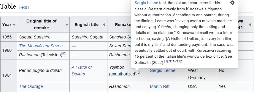 >53 год Четыре итальянских ремейка Куросавы - это сильное культурное влияние, а четыре американских ремейка французского фильма семидесятилетней давности - это слабое культурное влияние. Это совсем, совсем другое.