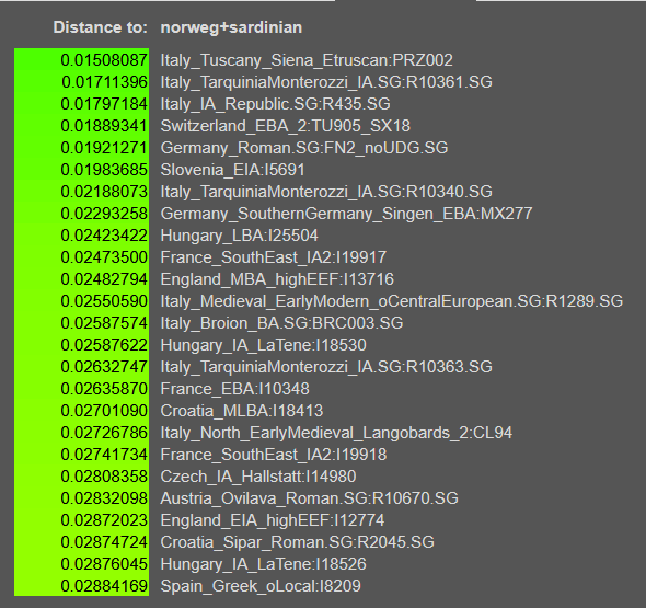 >>985964 Кстати если скрестить сардинца и любого западного европейца то будет очень низкая дистанция до римлян, идеальный фит будет у сардинца+северного француза, тогда будет буквально римлянин. А итальянцы не похожи нихуя