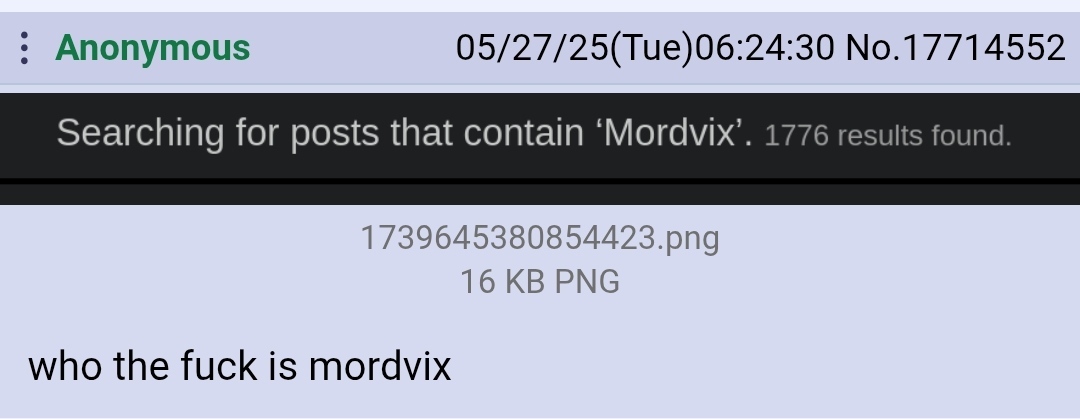 В треде ещё был мифический персонаж по кличке "говникс" - анонимный аноним а котором ничего не известно но он был главным обоссывателем мордвикса. Илья предположил что он казах, но это маловероятно, никаких пруфов небыло