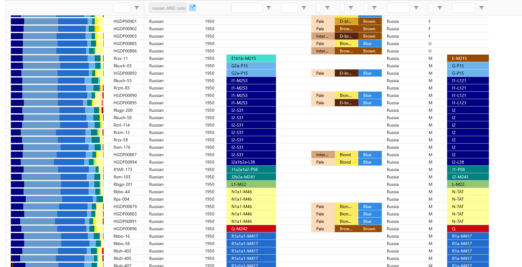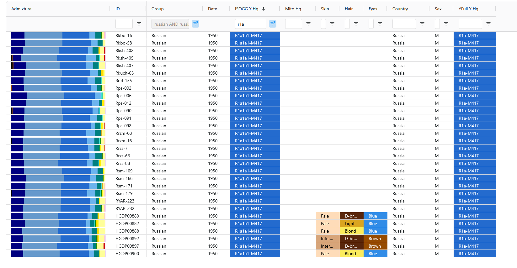 Нихуя там месиво конечно. Погодите-ка...почему европейских гапл всего 58%, но европейская примесь 84%? И где срубная r1b?