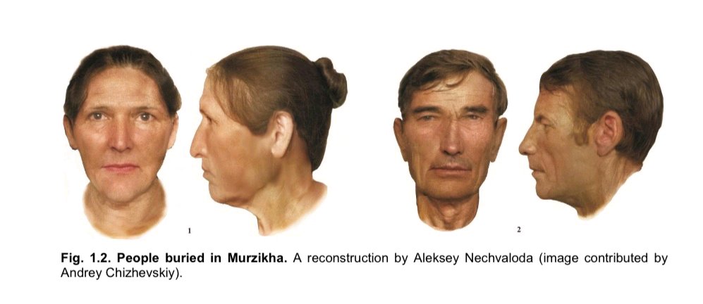 Реконструкция двух людей, похороненных в Мурзихе, из дополнительных материалов «Генетического происхождения индоевропейцев». Они находились на дальнем северном конце Кавказо-Волжской клины ранних западных степных скотоводов, включая Хвалынск. Они были в основном EHG с небольшой примесью популяции Бережновки-Прогресс.
